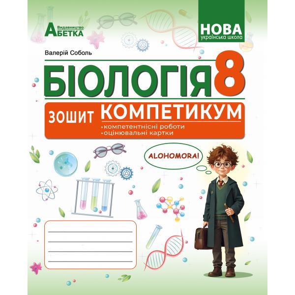 Робочий посібник «ЗОШИТ-КОМПЕТИКУМ» з біології (8 клас) є частиною дидактичного комплекту, що призначений для тематичного оцінювання навчальних досягнень учнів за трьома групами результатів. У комплект входять ще «ЗОШИТ-ПРАКТИКУМ» та «ЗОШИТ-КРЕАТИКУМ».