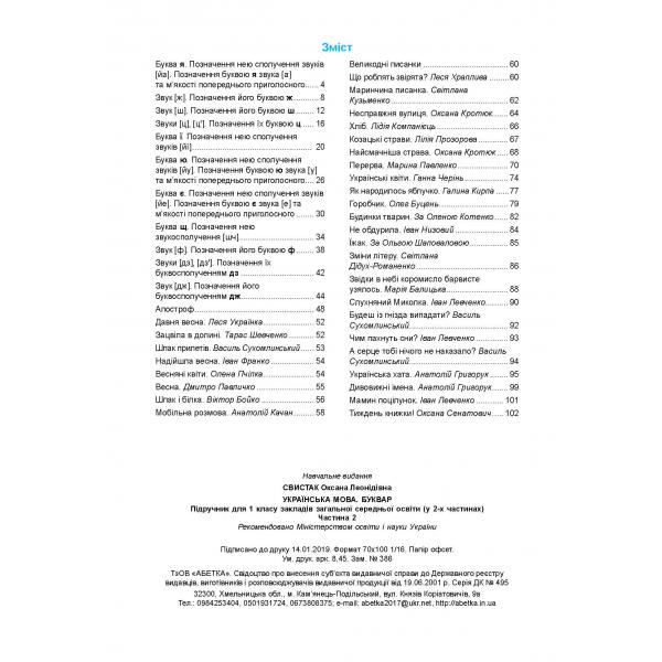 Українська мова. Буквар. Частина 2. Свистак О.Л.